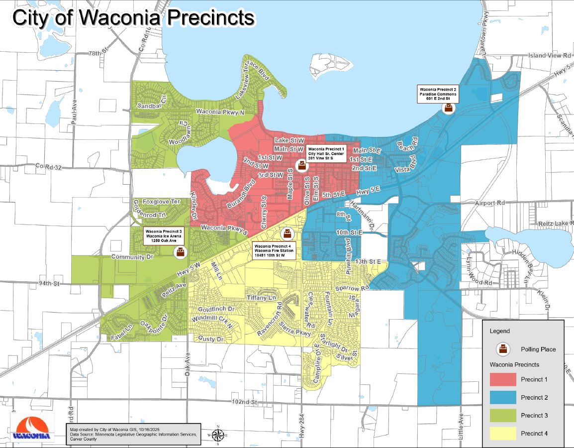 Waconia, Minnesota, has recently updated its voting precincts due to population growth. As of late 2025, the city added a fourth precinct (P-4) and adjusted boundaries for the 2026 elections. FUTURE Precinct and voting locations for 2026 are listed below.